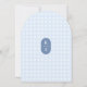 Para la moderna novia clásica que quiere algo sencillo y elegante con líneas depuradas pero con un guiño a las tendencias, esta invitación sería perfecta. El diseño de una ducha de matrimonio "Algo Azul" presenta una de las estampas más recientes de la temporada, un patrón de tejido de mimbre abierto y en forma de arco. En la parte trasera hay un monograma de parejas sencillas y modernas.