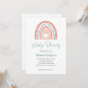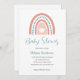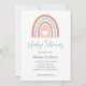 Una encantadora invitación a la ducha de bebé con un elemento arco iris estilo boho, todo el texto puede ser totalmente personalizado para la celebración familiar.