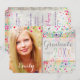 Colección deslumbrante de PixDezines, confeti en colores con fondo de lámina plateada falsa, invitaciones para fiesta de graduación y/o anuncio. Los diseños dinámicos de PixDezines le permiten editar cualquier elemento de este producto, es decir, fondo, recortes, fuentes, color de las fuentes. Simplemente agregue una foto de su graduado.