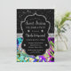 Esta atrevida y glamurosa invitación de Sweet Sixteen presenta un deslumbrante fondo abstracto de neón con arcoíris con texturas de purpurina brillantes y un panel central negro elegante. Trazos vívidos de azul turquesa, púrpura, rosa, dorado y azul crean un aspecto enérgico y artístico que se siente moderno, vibrante e inolvidable. La tipografía de letra cursiva y serif blanca crujiente se destaca hermosamente contra el dramático fondo, resaltando esta celebración de hito con estilo. Perfecta para adolescentes que aman el color brillante, el brillo y el diseño contemporáneo, esta invitación marca el tono para una fiesta de Sweet 16 animada e inolvidable.