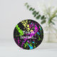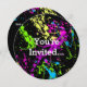 Invitación Arcoiris retro con manchas de pintura neón en negr