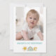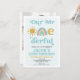 Nuestro Sr. Maravilloso Invitación de primer cumpleaños Nuestro Sr. Maravillosa invitación de primer cumpleaños para un bebé con un sol, arcoiris y un texto tipo letra de estilo retro. Esta invitación de Mr. one-Maravillosa para el primer cumpleaños también tiene un fondo azul claro y una foto en la parte trasera.