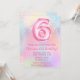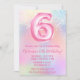 Invitación de cumpleaños 6 arcoiris rosado Invitación de Purpurina Girly Pink invitación a una fiesta de cumpleaños para un chica de 6 años con escritura moderna y divertidos globos de Relieve metalizado.