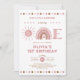 Invitación bohemia de arco iris por primera vez en polvorientos tonos rosados, amarillos y cálidos de terracota. Haga clic en el botón "personalizar adicional" si desea reorganizar y formatear el estilo y la ubicación del texto.