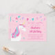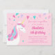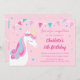 Invitación Arcoiris singulares Unicornio rosa 5 cumpleaños