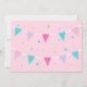 Esta invitación a la fiesta de cumpleaños número 5 presenta un bonito y caprichoso diseño de unicornio con morado rosado y mané acuático y flores. En un fondo rosado, se encuentran el bunting, las estrellas y el confetti. Personalízalo con tu propio texto.