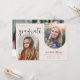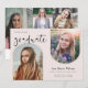 Celebra el nuevo graduado con esta invitación única de graduación con hermosos arcos de oro mostrando tus fotos senior en un diseño impecable. Personaliza con el nombre del graduado, la escuela, los planes futuros y luego los detalles del evento en la parte de atrás junto con otras 5 fotos favoritas de graduados. Esta es la versión rosa de color.