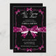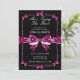 Haz una declaración audaz con esta invitación a la moda y moderna ducha de novia negra con acentos púrpura y un tema lúdico. El elegante guión que dice "She's Tying The Knot" ocupa el centro del escenario a través de una cinta rosa ancha, rodeada de estrellas extravagantes y arcos sucios. Perfecto para novias que aman una mezcla de elegancia y encanto, esta invitación marca sin esfuerzo el tono para una elegante celebración pre-boda.