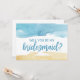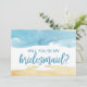 Esta arena acuática y el mar serán mi tarjeta de dama de honor es perfecta para una boda en la playa. El diseño abstracto se basa en una textura acuática amarilla y azul, que saca a relucir las vibraciones oceánicas. Personalizar la tarjeta con el nombre de la novia y la dama de honor. Personaliza la parte posterior de la tarjeta con un mensaje personalizado.