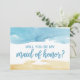 Esta arena acuática y el mar serán mi tarjeta de honor es perfecta para una boda en la playa. El diseño abstracto se basa en una textura acuática amarilla y azul, que saca a relucir las vibraciones oceánicas. Personalizar la tarjeta con el nombre de la novia y la criada de honor.