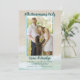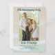 Invitación a la fiesta de aniversario de boda para celebrar cualquier año de casados. La imagen detrás de tu foto y texto es la arena y las olas de la playa con agua azul-verdosa tropical que lame la orilla. Una plantilla de foto vertical está delineada en color azul marino. El texto es azul-verdoso oscuro con redacción mínima. El año del aniversario está en la parte superior de la foto, con los nombres de la pareja debajo. El texto de la fiesta impreso en mayúsculas se agrega utilizando un máximo de cinco líneas. El reverso también tiene una escena de playa.