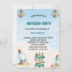 Esta elegante y divertida invitación a la fiesta de cumpleaños de la playa cuenta con un elegante diseño acuático que hará brillar a su fiesta de playa. La mezcla de tonos de playa y oro aporta un toque de magia y sofisticación, lo que lo hace perfecto para cualquier celebración de la playa. El diseño es llamativo y moderno, y los falsos elementos lacados le dan un toque divertido
