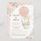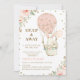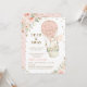 Arriba, Arriba y Afuera Balón de aire caliente Invitación rosa Baby Shower Conejo cute y globo de aire caliente invitación a ducha de bebé para una bebé con un globo de aire caliente en su mayoría rosado, lindo conejito blanco y un globo rosa. Este chica con ducha para bebés también cuenta con dos encantadores arreglos florales rosas.