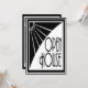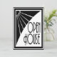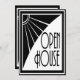 Clásica y elegante invitación de Casa Abierta art déco retro vintage en diseño impactante negro y blanco. Personalízala con los detalles de tu fiesta en el reverso para causar una impresión que tus invitados seguramente notarán. ¡Ideal para fiestas de Navidad o para esa celebración especial de Nochevieja!