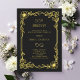 Para un elegante estilo Gatsby en el 50 aniversario de bodas. Un fondo negro decorado con un marco dorado de estilo art déco con flores y el signo de infinito, bucle. Personalice y agregue sus nombres y detalles de la fiesta.