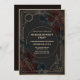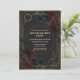 Set the scene for a thrilling whodunit! This moody, black-and-gold invitation features an Art Deco geometric frame with detective icons—a magnifying glass, dagger, and candle—over a dark floral/smoke background. The round center panel makes your party details easy to read while keeping the dramatic vibe.