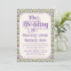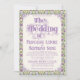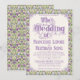 An elaborately detailed Art Nouveau wedding invitation featuring a pattern of lilac lovebirds and lavender butterflies in profile perched atop scrolling vines of purple thistle on a pale yellow background. A pairing of elegant fonts has been carefully selected to accompany this invitation's decorative floral announcement text, however, they can be changed to meet your needs. You can also change their colors, as well as the color of the announcement text.