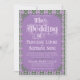 An elaborately detailed Art Nouveau wedding invitation featuring a purple thistle scroll and vine striped pattern on a light purple background, with a bold and delightful color palette. A pairing of elegant fonts has been carefully selected to accompany this invitation's decorative floral announcement text, however, they can be changed to meet your needs. You can also change their colors, as well as the color of the announcement text.
