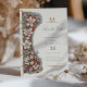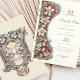 Esta elegante tarjeta "Save the Date" presenta un impresionante diseño Art Nouveau, adornado con intrincados azulejos blancos y un frondoso follaje sobre un llamativo fondo rojo. El suave marco de marfil y los toques de color verde sabio crean un equilibrio armonioso, combinando el encanto vintage con un toque romántico moderno. La parte delantera presenta los detalles principales del boda en un estilo delicado y ornamentado, mientras que la parte trasera exhibe un intrincado motivo floral que refleja la belleza de la naturaleza. Perfecto para las parejas que buscan una invitación boda lujosa y artística, esta tarjeta ofrece una primera impresión inolvidable para su día especial.