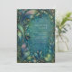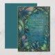 Captivate your guests with this mesmerizing design that embodies the organic fluidity of the Art Nouveau movement. The artwork features sweeping, elongated curves of stylized foliage that cascade down the left side, resembling fern fronds or sea plant life in ethereal shades of cyan and deep aquamarine. The intricate lines are accented with delicate metallic detailing and clusters of small, orb-like dots that mimic the look of scattered dew or precious stones. The background is a textured, moody wash that adds depth and mystery, creating a dreamlike atmosphere for your event details. This artistic and fluid design is a flawless choice for a whimsical garden wedding, a magical underwater-themed party, or a sophisticated evening soiree. You might also select this unique aesthetic for a creative bridal shower, a milestone birthday celebration, or an elegant engagement announcement for a couple who loves vintage art. This decorative botanical border is also perfectly suitable for high-end spa service menus, boutique artisan business cards, or luxury wellness retreat brochures.