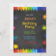 Descanse su creatividad con esta vibrante invitación de cumpleaños de Art Paint! Perfecto para los jóvenes artistas, esta invitación presenta coloridos salpicaduras de pintura, pinceles y paletas, lo que crea el escenario para una celebración artística llena de diversión e imaginación. Personalizar los detalles para reflejar tu evento, e invita a tus invitados a una fiesta de cumpleaños donde la creatividad no conoce límites. Ideal para los amantes del arte de todas las edades, esta invitación promete una celebración colorida y memorable que inspirará a todos a ser creativos.