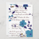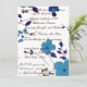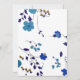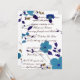 Invitación de la cena del ensayo con diseño artístico floral azul y beige delicado contra un fondo blanco.