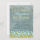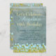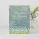 Clásica verde azulada invitación rústica de fiesta de cumpleaños con flores de color azul y agua para un elegante pop está lista para que usted lo personalize. Personalizable fácil para ese chica especial de cumpleaños.