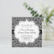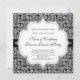 Hermosa invitación vintage para fiesta de baile con elegante diseño floral en blanco y negro.