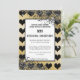 Invitación a la boda única con el As negro de los corazones sobre un fondo dorado y Purpurina negro por celebrar un divertido aniversario Boda.