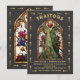 Invitaciones para una fiesta de misterio y asesinato de "TRAIDORES" inspirada en cartas de tarot. Cuenta con un hombre y una mujer de vidrio emplomado con capas y armas en un marco de ventana estilo iglesia con un fondo negro texturizado falso claro. Detalles dorados falsos. Perfecto para Halloween, una noche bajo las estrellas, cósmico, horóscopo, gótico o noche mística mágica de asesinato divertido. Todo el texto se puede cambiar. Dorado falso. Para hacer más cambios, vaya a Personalizar esta plantilla. En la parte inferior, verá "¿Quiere personalizar aún más este diseño? Haga clic en EDITAR utilizando la herramienta de diseño. Desde allí, puede cambiar algunas de las fuentes y algunos colores, mover cosas o eliminar lo que necesite.