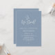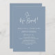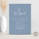 Marque el comienzo de su eternidad con elegancia usando nuestra hermosa y hermosa vegetación contemporánea y polvorienta tarjeta de invitación a la celebración del boda con temática azul, "Entonces, nos fugamos". Perfecto para las parejas que ofrecen su alegre ocasión, esta invitación exuda sofisticación con un toque de alegría, sentando el escenario para un evento memorable. Adornado con un tema de diseño de guiones modernos y atemporales, le da un toque de encanto refinado a sus festividades. Diseñada por TeeshaDerrick, esta invitación promete capturar maravillosamente tu historia de amor.