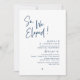 Marque el comienzo de su eternidad con elegancia usando nuestra hermosa y hermosa tarjeta de invitación a la celebración de la independencia del boda con temática azul de la Marina, "Entonces, nos fugamos". Perfecto para las parejas que ofrecen su alegre ocasión, esta invitación exuda sofisticación con un toque de alegría, sentando el escenario para un evento memorable. Adornado con un tema de diseño de guiones modernos y atemporales, le da un toque de encanto refinado a sus festividades. Diseñada por TeeshaDerrick, esta invitación promete capturar maravillosamente tu historia de amor.