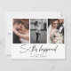 Anuncia tu alegre fuga con nuestra tarjeta postal multifoto de "Así que esto pasó". Esta encantadora tarjeta postal presenta un diseño elegante que muestra múltiples fotos, capturando los momentos especiales de tu íntima celebración. Perfecta para compartir tus emocionantes noticias con amigos y familiares, esta tarjeta postal te permite mostrar de manera hermosa los aspectos más destacados de tu gran día. Elaborada con cuidado y atención al detalle, es una forma encantadora de hacer que todos compartan tu felicidad de recién casados.