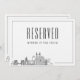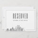 No tan rápido... Asegúrate de que no se tomen asientos para nadie más que para esa persona especial en tu familia o fiesta de bodas. Este único cartel reservado para bodas es para un matrimonio que se celebra en la hermosa ciudad de Pittsburgh y cuenta con un esquema deco del horizonte de la ciudad junto con un lugar para el nombre del ocupante del asiento.