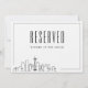 No tan rápido... Asegúrate de que no se tomen asientos para nadie más que para esa persona especial en tu familia o fiesta de bodas. Este único cartel reservado para bodas es para una boda que se lleva a cabo en la hermosa ciudad de Seattle y cuenta con un contorno deco del horizonte de la ciudad junto con un lugar para el nombre del ocupante del asiento.