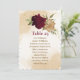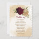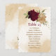 Hermosa tarjeta de asignación de asientos de boda de otoño con flores granate y beige dorado con hojas verdes.