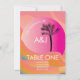 Tarjeta de asiento de mesa de boda tropical personalizable con ombre colorido y palmera