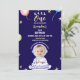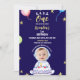 Un astronauta color agua adorable celebra con una torta de cumpleaños y globos coloridos, flotando entre las estrellas por una divertida escena de primer cumpleaños fuera de este mundo.