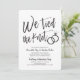 Después del gran día y del intercambio de anillos, invite a sus invitados más honorados a una celebración. Esta invitación presenta las palabras "Nos unimos en matrimonio" en letras de escritura elegante. Hacia un lado de esto hay un par de anillos de boda. Debajo de este gráfico único hay un espacio para sus propias palabras e información para su evento posterior a la boda.