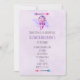 Una invitación de cumpleaños elegante mágica y mística. Un diseño temático de nativos americanos creado con acuarelas. Un atrapasueños de acuarela rosa con un aro tejido y delicadas plumas colgando. Puesto sobre una mancha de pintura de acuarela morada con un fondo morado claro. 2 flechas de colores brillantes decoran la parte superior e inferior.