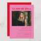 La tipografía audaz es una invitación a una fiesta de graduación de fotografía moderna en rosa y rojo brillante
