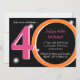 Invitación Audaz Fiesta Rosa y Naranja 40º cumpleaños