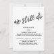 Aquí hay una opción moderna y simple para sus necesidades de celebración de aniversario de bodas. Sobre un fondo blanco (el color se puede cambiar a cualquier cosa que prefiera), he colocado un gráfico de tipografía que dice "we still do". El gráfico se creó utilizando una fuente de escritura a mano moderna y casual. Utilice los campos de plantilla para agregar sus propios detalles y haga clic para personalizar aún más si desea realizar alguna modificación adicional. Todas las capas están desbloqueadas para permitir todo el control de posicionamiento y tamaño que desee.
