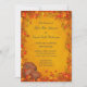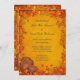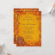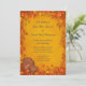Diseño festivo de invitación a bodas con tema de otoño con tonos amarillos, rojos, marrones y naranjas, con una hoja decorativa de color otoño y un borde de vid con un grupo de calabazas en la esquina inferior. El fondo tiene una hermosa textura falsa para un aspecto de papel antiguo. Este diseño también viene en muchos otros productos de papel para satisfacer todas las necesidades de su boda. Siga el enlace de abajo.