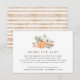 Celebra tu calabaza con esta encantadora tarjeta "Books for Baby", la adición perfecta a tus invitaciones para la ducha de bebé en otoño. Con un diseño de acuarela acogedor con calabazas, vegetación y tazas de café, este inserto pide a los huéspedes que traigan un libro en lugar de una tarjeta, creando una biblioteca significativa para que el bebé disfrute en los años venideros. Personalice los detalles de su evento con un toque cálido y reflexivo. Agregue la redacción de su personalizado a este diseño utilizando los cuadros "Editar esta plantilla de diseño" situados en la parte derecha del elemento, o haga clic en el botón azul "Personalizar" para organizar el texto, cambiar los tipos de letra y los colores y añadir información o imágenes adicionales a este diseño. Si necesita algún elemento de coordinación, (gracias a las tarjetas, etc.) por favor contáctame para un pedido de personalizado. ****Por orden de personalizado, no coloque esta mercancía en su carrito. En su lugar, envíeme su solicitud por correo electrónico a lauralise@iyhtvdesigns.com Una vez que el artículo esté disponible, se le enviará por correo electrónico un enlace a su mercancía. Puede usar ese enlace para realizar su pedido. Por favor, espere hasta 48 horas.