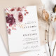 This wedding invitation features a watercolor flower bouquet of dahlia, garden rose, and hydrangea in burgundy red, maroon, blush pink over fall leaves. For more advanced customization of this design, please click the BLUE DESIGN TOOL BUTTON. Matching items are also available.