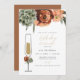 Este brunch de cumpleaños ofrece ricos florales de terracota y deliciosos adornos con una divertida florida flor de champán. Edite la mayoría de las palabras para satisfacer las necesidades de su evento. Esta invitación a naranja quemada es perfecta para su desierto bohemio o evento temático de otoño.