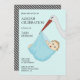 Invite a sus invitados con esta encantadora invitación al Aqiqah, que incluye un adorable pajarito de cigüeña que lleva a un niño sorprendido contra un fondo de polka azul. Simplemente agregue los detalles de su evento en esta plantilla fácil de usar para convertirla en una invitación única. Girar la tarjeta para mostrar un patrón de rayas grises y blancas en la parte posterior de la tarjeta.