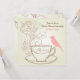 Bonito personalizado: Pájaro de silueta rosada sentado en una taza de té con flores invitadas en Baby Shower para Chicas en rosa y marrón.