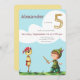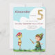 Sorprende a tus futuros invitados con esta linda tarjeta de cumpleaños de pirata. La imagen presenta a un niño jugando con su espada de madera y un espantapájaros pirata. Personaliza la invitación con tu propio texto. Si lo deseas, puedes personalizar aún más cambiando las fuentes, tamaños y colores. Ilustrado y diseñado por Patricia Alvarez.